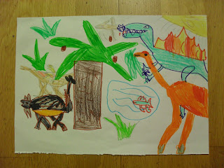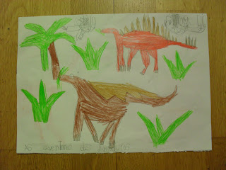 Há muitos outros desenhos guardados pela casa, mas neste momento apenas um gostava de encontrar e fotografar (pensava que já o tinha feito, mas, pelo vistos, não o fiz). É o desenho de uma praia. Quando o reencontrar, fotografo e publico, fica prometido. ********* Depois de publicar, olhei para os dinossauros e pensei que os desenhos não estão assim tão giros... A razão de os admirar prende-se mais com a minha incapacidade de desenhar este tipo de dinossauros (um dia destes faço um desenho de dinossauro para perceberem o que quero dizer).