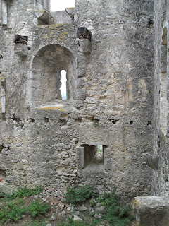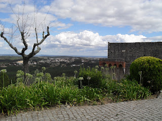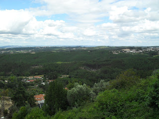 O Castelo de Ourém, como aliás todos os castelos que me lembro de visitar, fica no cimo de um monte. O que nem sempre acontece é a estrada ser tão estreita e com tantas curvas apertadas... O Rogério manteve-se do lado direito, mesmo nas curvas piores. Numa dessas curvas, as rodas direitas do carro pisaram o empedrado e o carro patinou. O Rogério fez umas tentativas de resolver o problema, mas não conseguiu. Entretanto, surgiram alguns automóveis, formando-se uma fila. O condutor do carro imediatamente atrás do nosso deu algumas sugestões, ajudando o Rogério a estacionar o carro na berma (onde, aliás, ele deixou o seu). Fizemos o resto do caminho a pé.